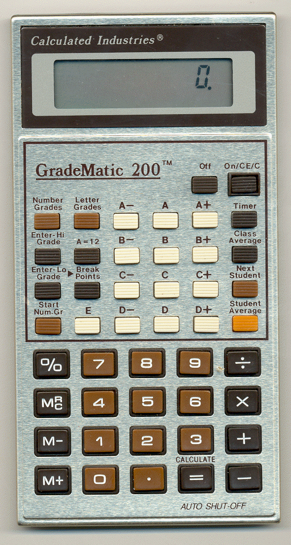 The GradeMatic 200 stepped up from the GradeMatic 100. It uses standard or custom-defined grade scales, and includes a timer. It was superseded by GradeMatics 3000 and 4000. (Why the tenfold inflation of model numbers? Good question.)