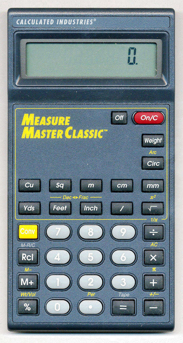 The Measure Master Classic superseded the Pocket Handyman line of calculators for simple unit conversions. A new feature on this machine is conversion between fractions and decimals.