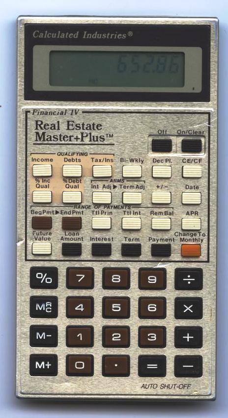 The Financial line continued with the Real Estate Master Plus. Adjustable rate mortgages and loan qualification information can be readily obtained from this advanced financial calculator. This version is gold; a black metal model was introduced the following year.