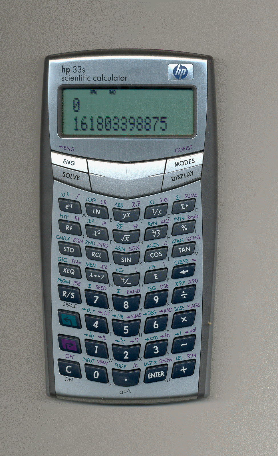HP-33S: A scientific calculator released in 02004 as part of the new line of HP calculators, this one is distinctive in styling but suffers from a design flaw or two. Note especially the tiny decimal point, which has been the target of much criticism in the collectors' community.