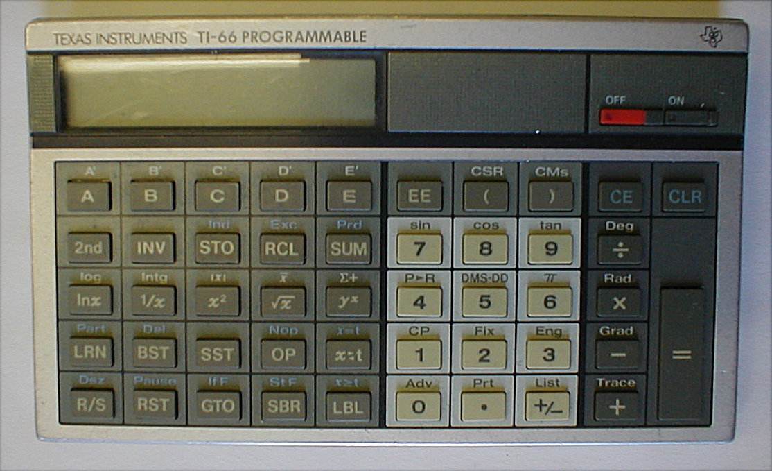 TI-66: A somewhat-scarce later-generation TI programmable in the horizontal format.