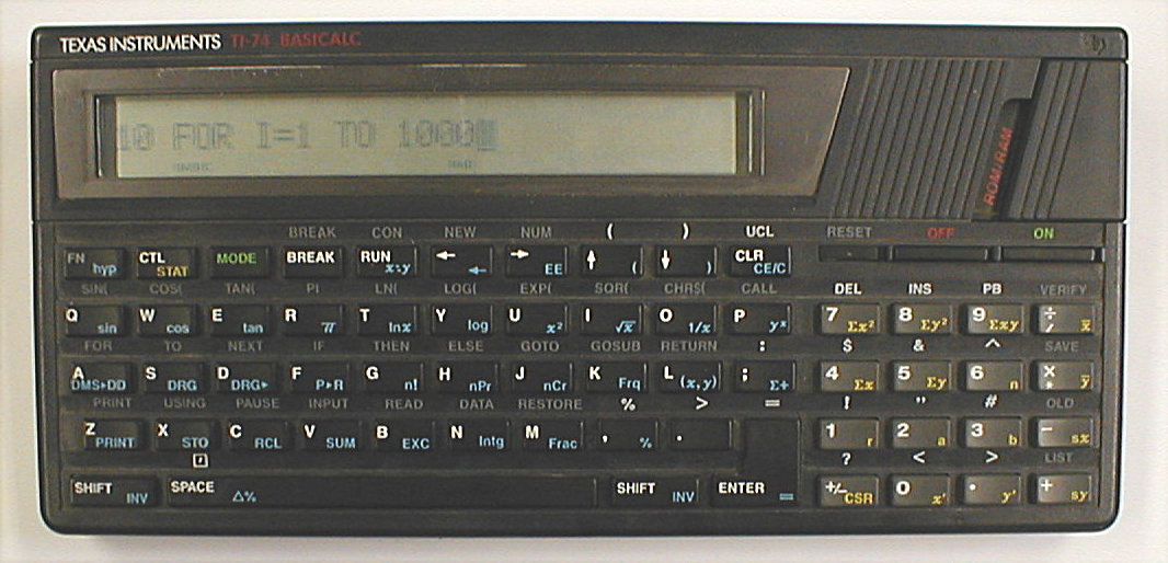 TI-74 BASICalc: This machine can function as a scientific calculator or be programmed in BASIC.